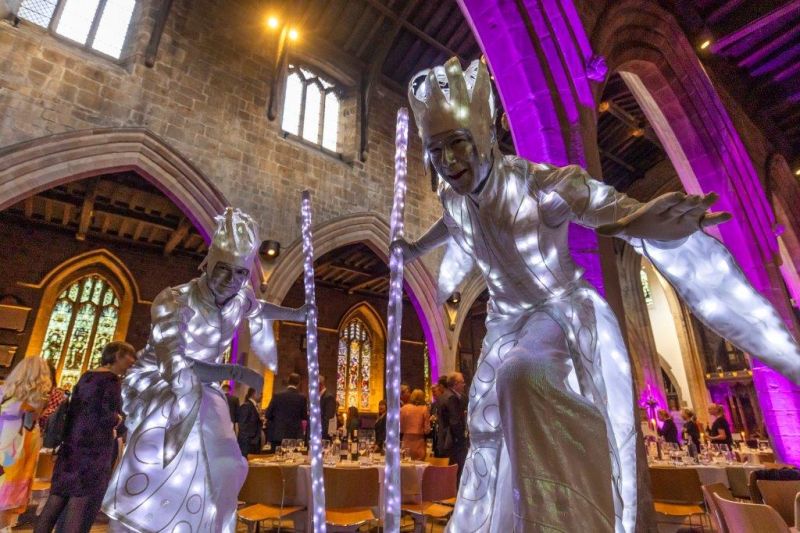 music from the Cathedral Choir and an enchanting performance by stilt performers and jugglers, Calvos.